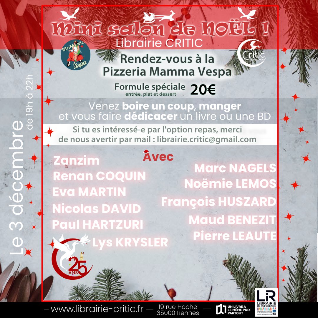 La rencontre sera suivie d’une séance de dédicaces, en partenariat avec Critic Libraire-éditeur Rennes